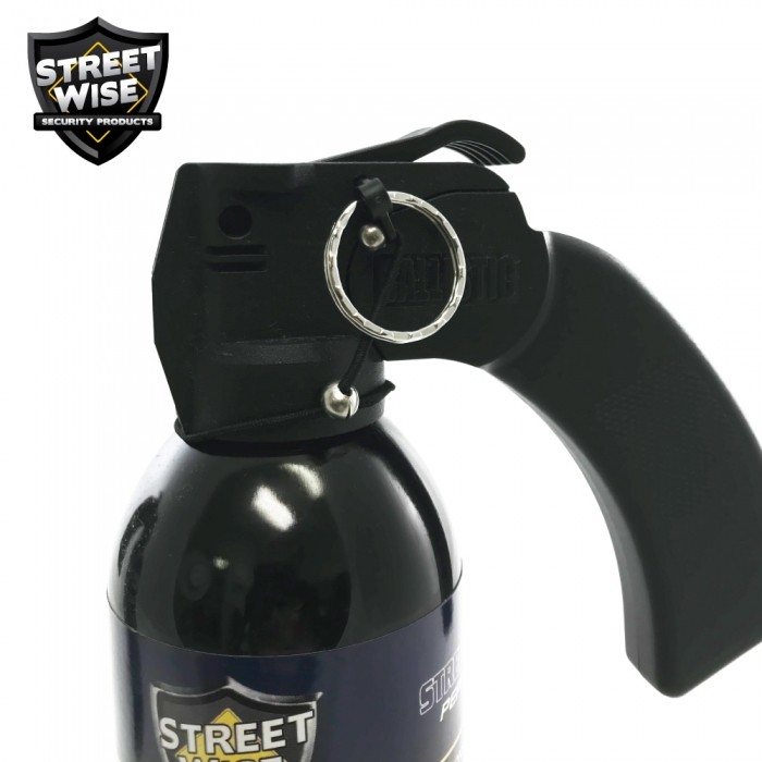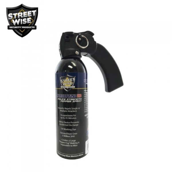 Streetwise 23 pepper spray comes with a pistol grip making it easy to grasp while spraying your attacker. It is large enough to handle any situation. Perfect for spraying crowds.
