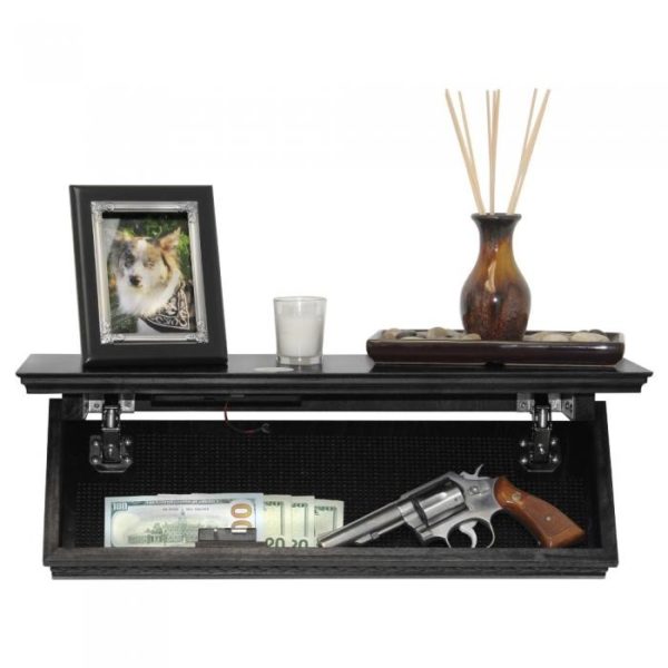 The Quick Shelf with RFID locking system is the safest place to hide and secure weapons, money, jewelry, etc. It looks just like an ordinary shelf so it blends in on any wall, effectively hiding your valuables in plain sight and adding just a touch of decoration. There are no numbers to memorize (which are easily forgotten in a panic situation) or buttons to push. You simply place the included RFID card, key fob, or token on the top of the shelf and, like magic, it instantly opens. With the RFID locking system your gun and other valuables are secure, yet can be accessed in seconds. Perfect for keeping weapons readily available for home defense-yet safely secured from children or thieves. With the included back up battery you will never have to worry about being locked out and can always access the contents of your safe when needed.