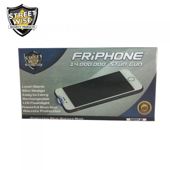 This might just be the most realistic cell phone stun gun on the market today! Most other models are big and bulky and look like phones that were popular 10 years ago. The FRiPHONE 14,000,000* looks just like a current smart phone. Although it is not a real cell phone, you will be making the right call with the FRiPHONE. At the first sign of danger just get out your FRiPHONE and pretend to make a call. Any bad guy who gets too close to this cell phone will get the message loud and clear that you will not be a victim!
